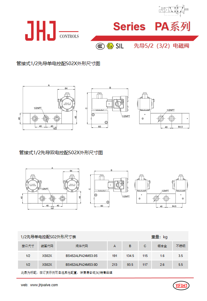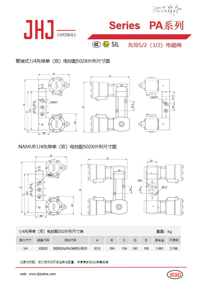 先导式电磁阀S02X系列