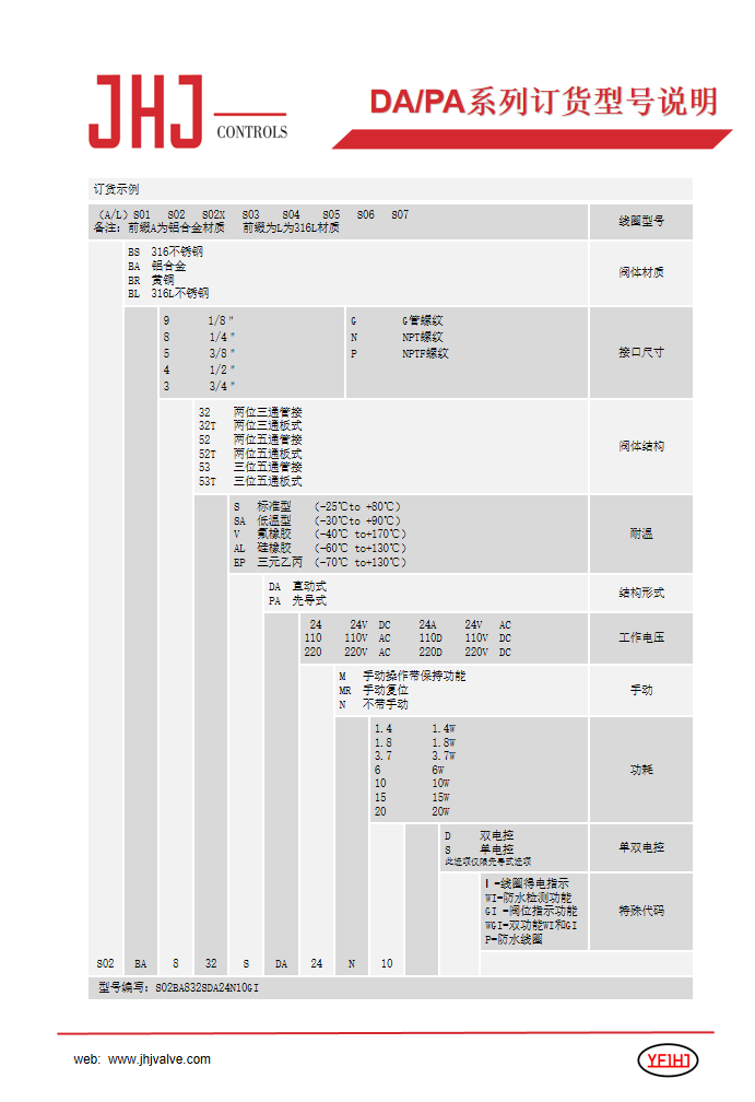 直动式电磁阀订货示例
